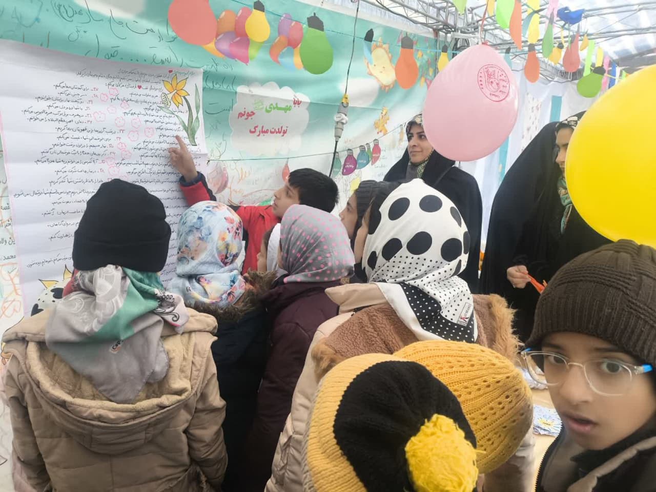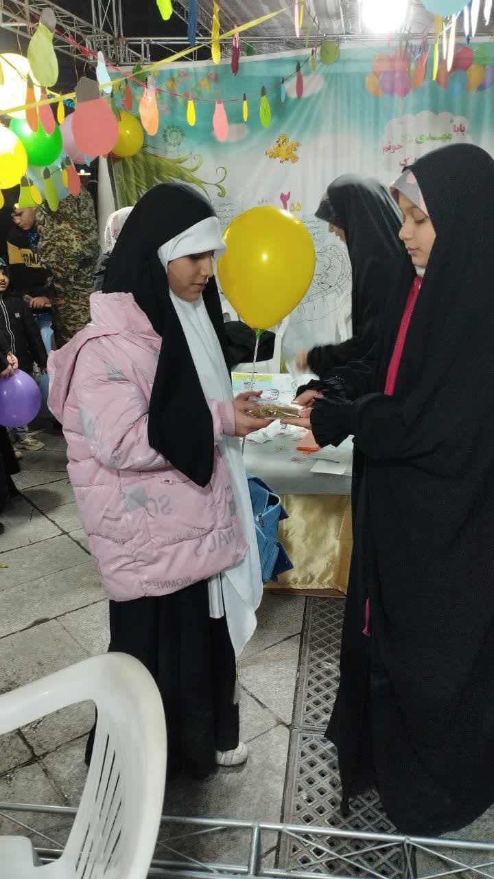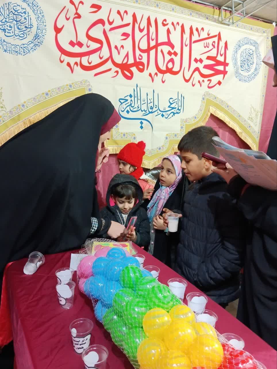 بازی استیکر که جملات مهدوی را با حالات مختلف استیکر، بیان می کردند نیز انجام شد و هدایای مختلفی به کودکان ارائه گردید.