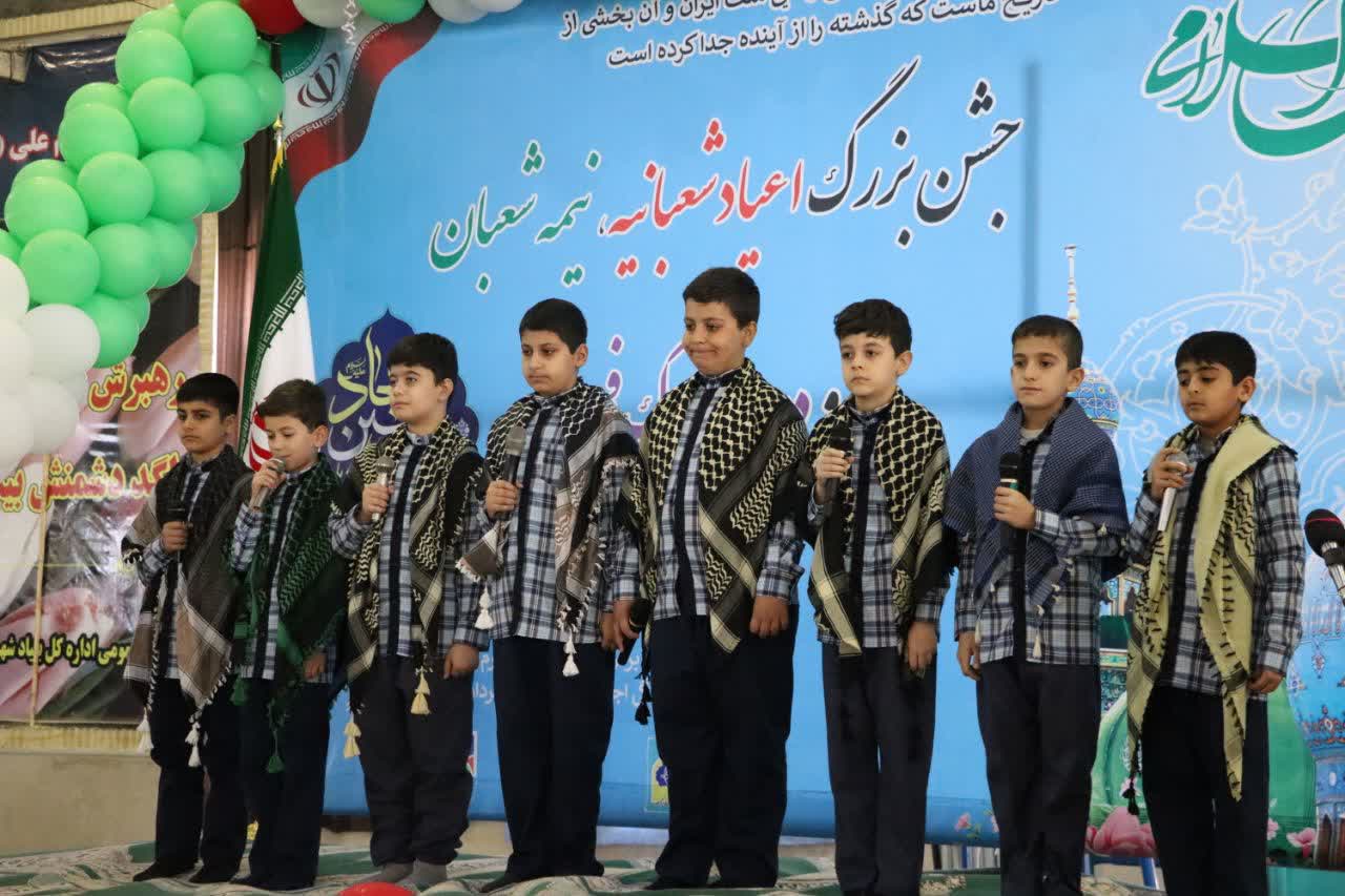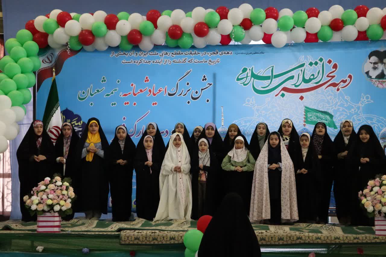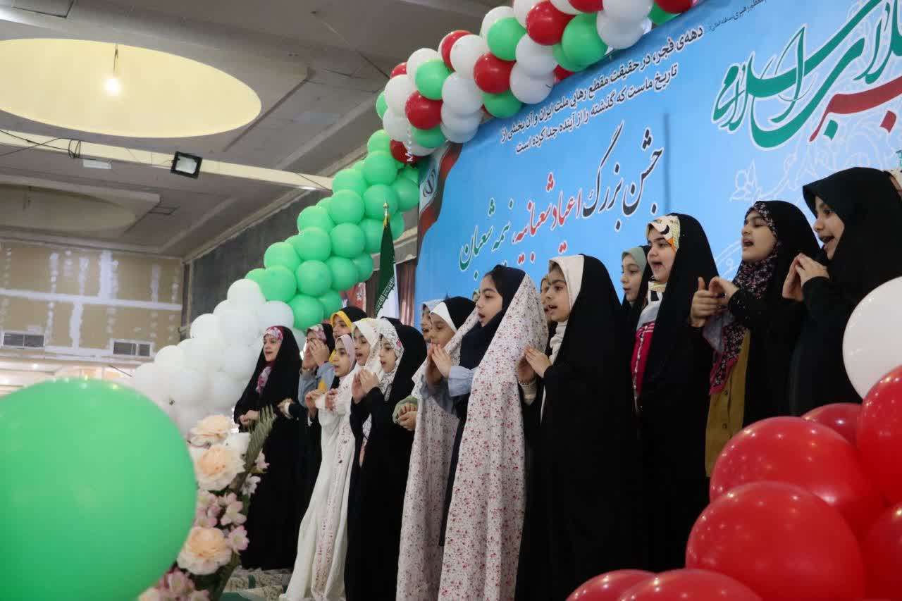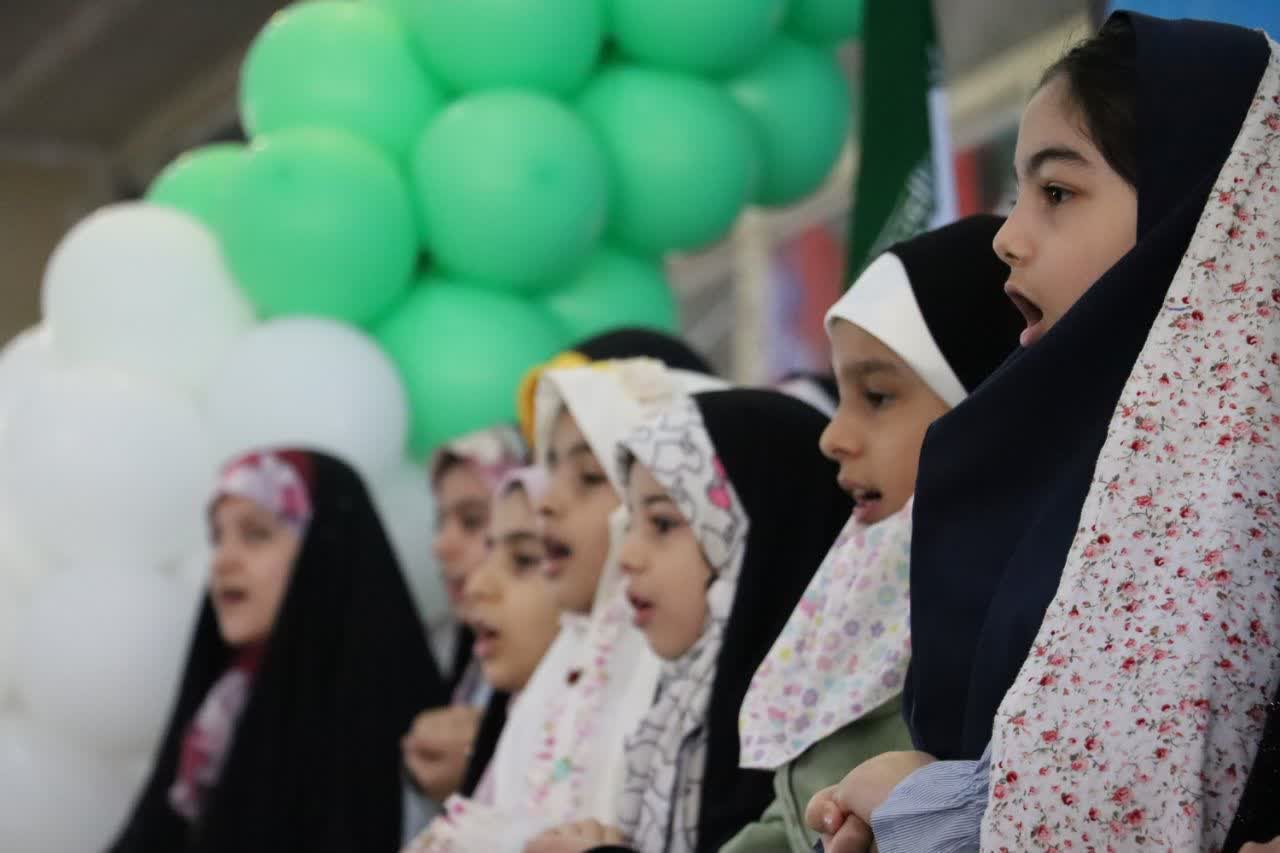 همچنین، اجرای گروههای سرود دانشآموزی، حال و هوای حماسی به این جشن بخشید. در این بخش، دانشآموزان سرودهای قهرمان قصهها و بیعت میکنم را با مضامین ملی، انقلابی و مهدوی اجرا کردند که پیوند میان آرمانهای انتظار و ارزشهای اسلامی ایرانی را به تصویر میکشید.