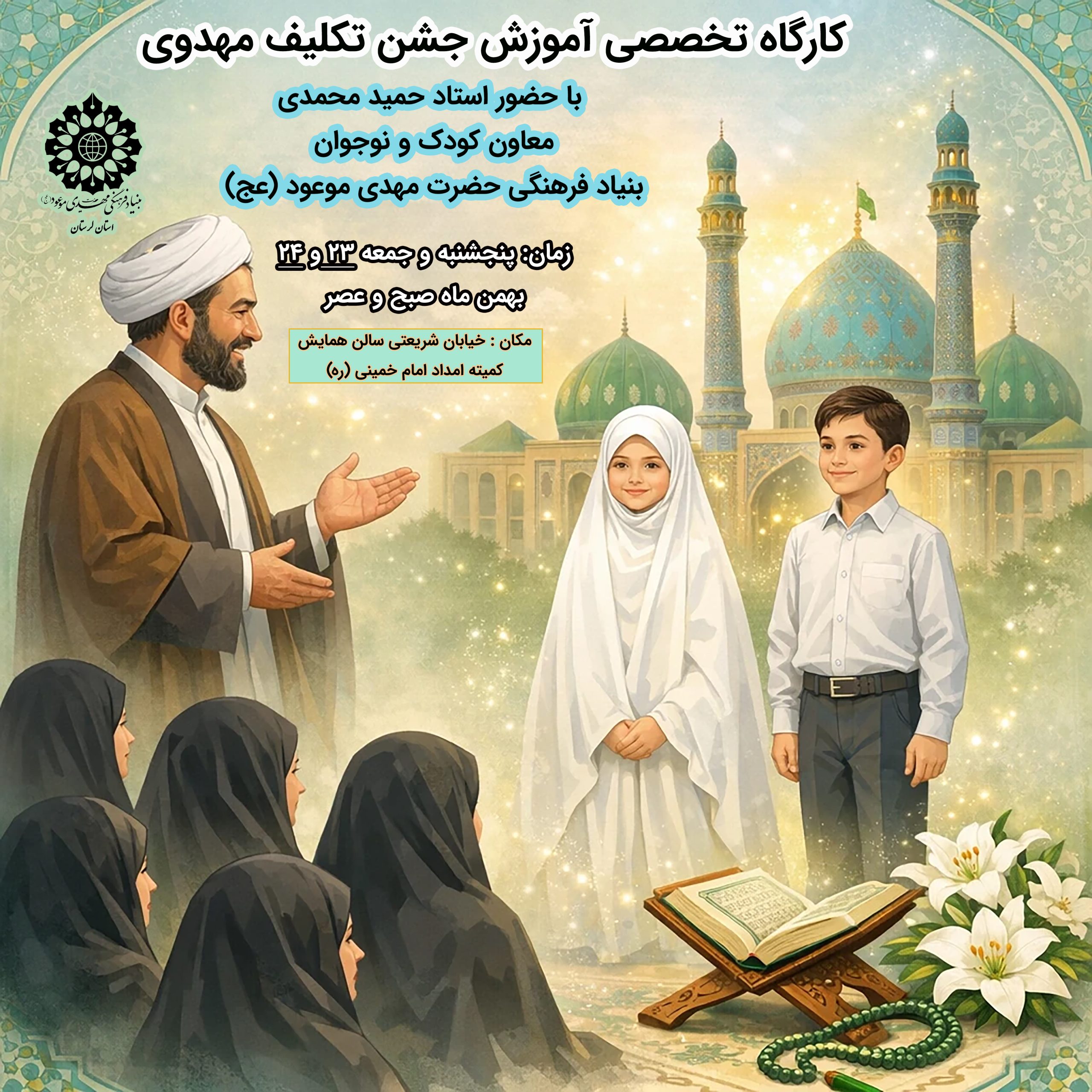 به گزارش روابط عمومی بنیاد فرهنگی حضرت مهدی موعود (عج) لرستان، در راستای تعمیق فرهنگ مهدویت و ارائه الگوهای نوین آموزشی، کارگاه تخصصی دو روزه‌ای را با عنوان آموزش جشن تکلیف مهدوی و پرده‌خوانی در خرم‌آباد برگزار می شود.