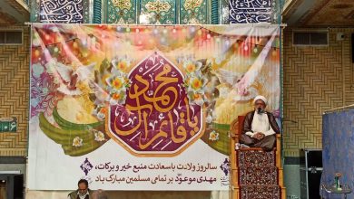 وی با تاکید بر فرمایش امیرالمومنین علیه السلام که می فرمایند: «أَفْضَلُ العِبادَهِ الصَّبْرُ وَالصَّمْتُ وَانْتِظارُ الفَرَجِ» است، افزود: پیامبر دو مطلب بزرگ را به ما سپرده است، کتاب الله و اهل بیت، یعنی قرآن منهای اهل بیت و اهل بیت منهای قرآن نمی تواند انسان را به کمال برساند، ما باید در بحث حکومت جهانی حضرت امام زمان ارواحنا فدا، همه جانبه تلاش کنیم، نه فقط در یک بعد، بلکه در تمام زمینه ها نماز، مهدویت، عفاف و حجاب، مدیریت، محیط زیست و …، همان طور که عرض شد باید به منظومه عمل کنیم.