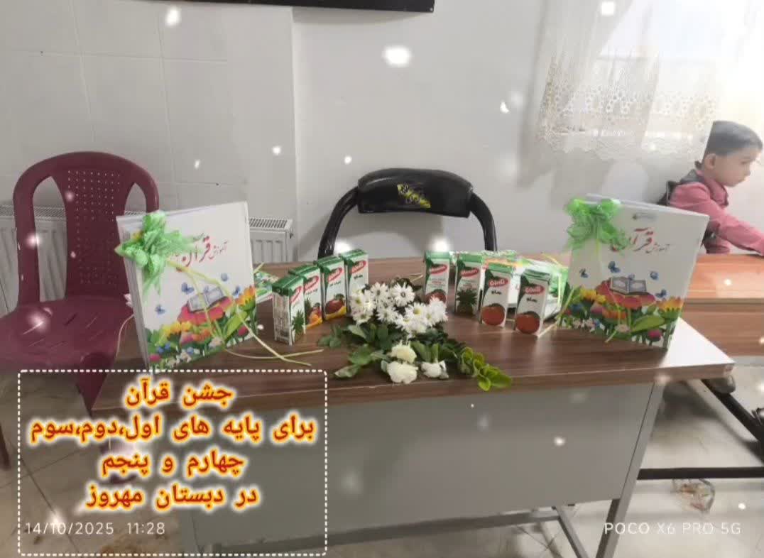 به گزارش روابط عمومی بنیاد فرهنگی حضرت مهدی موعود(عج) استان خراسان رضوی، کارشناسان بنیاد استان، الهام فاطمی، الهه فاطمی و زینب خیرآبادی، روز سه شنبه بیست و دوم مهرماه در مدرسه ابتدایی “مهروز” با برگزاری جشن قرآن، فضایی شاد و معنوی را برای دانشآموزان تمامی پایهها، از کلاس اول تا پنجم، رقم زدند.
