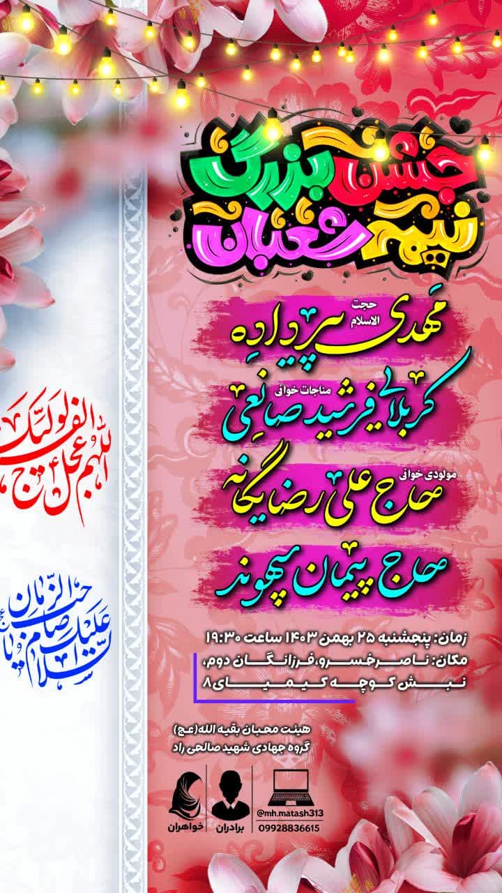 به گزارش روابط عمومی بنیاد فرهنگی حضرت مهدی موعود(عج) استان لرستان، جشن‌های مردمی شب نیمه شعبان با حضور پرشور مردم در اقصی نقاط استان برگزار شد.