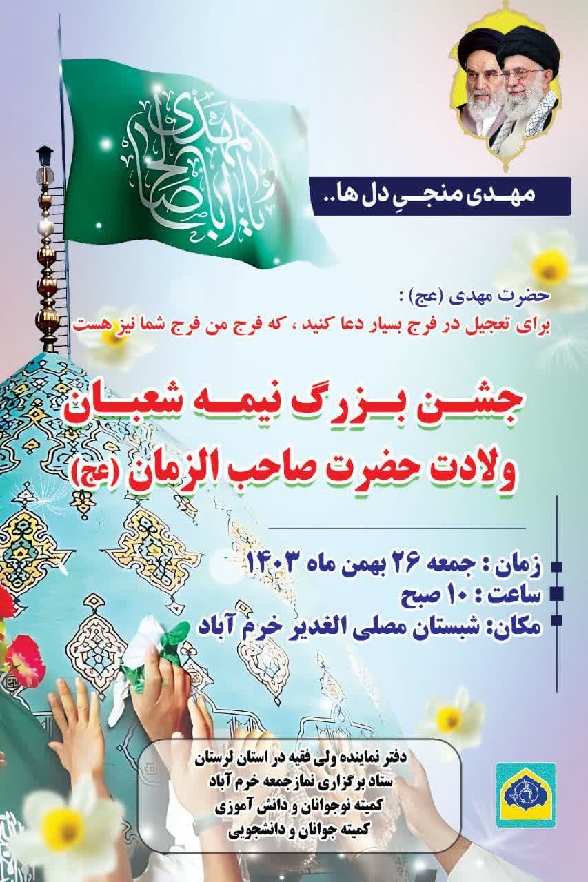 وی در خصوص برگزاری جشن های نیمه شعبان در سراسر استان نیز خاطرنشان کرد: بیش از دو هزار مراسم جشن نیمه شعبان در سراسر استان لرستان برگزار می شود، همچنین در دو سال گذشته که برنامه های سه شنبه های مهدوی را احصا کردیم در بیش از ۲۰۰ مسجد سه شنبه های مهدوی برگزار می شده است و در مجموعه بیش از هزار و  ۳۰۰ مراسم سه شنبه های مهدوی در سراسر استان اعم از مدارس، پایگاه های بسیج، مساجد و محافل عمومی برگزار می شود.
