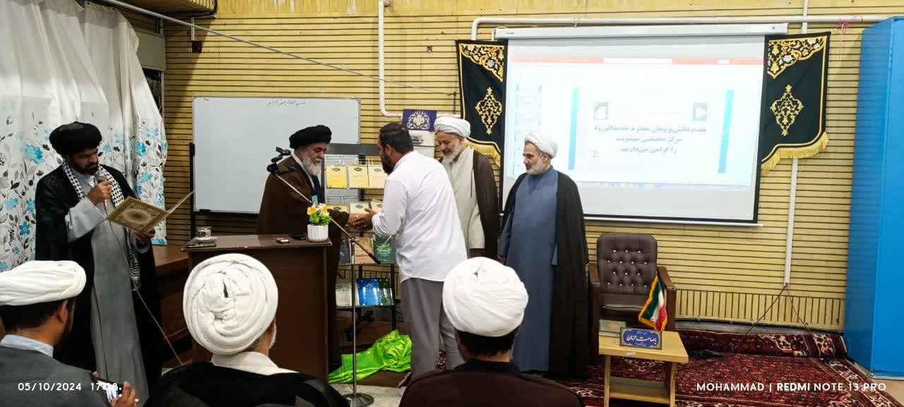 در پایان جلسه برنامه رونمایی از تازه های نشر مرکز تخصصی مهدویت و تجلیل و تکریم از سعید چشم براه و عبدالرحمن زیتونی، فارغ التحصیلان دوره بیستم مرکز تخصصی مهدویت با حضور حجت الاسلام و المسلمین آجاق نژاد صورت پذیرفت.